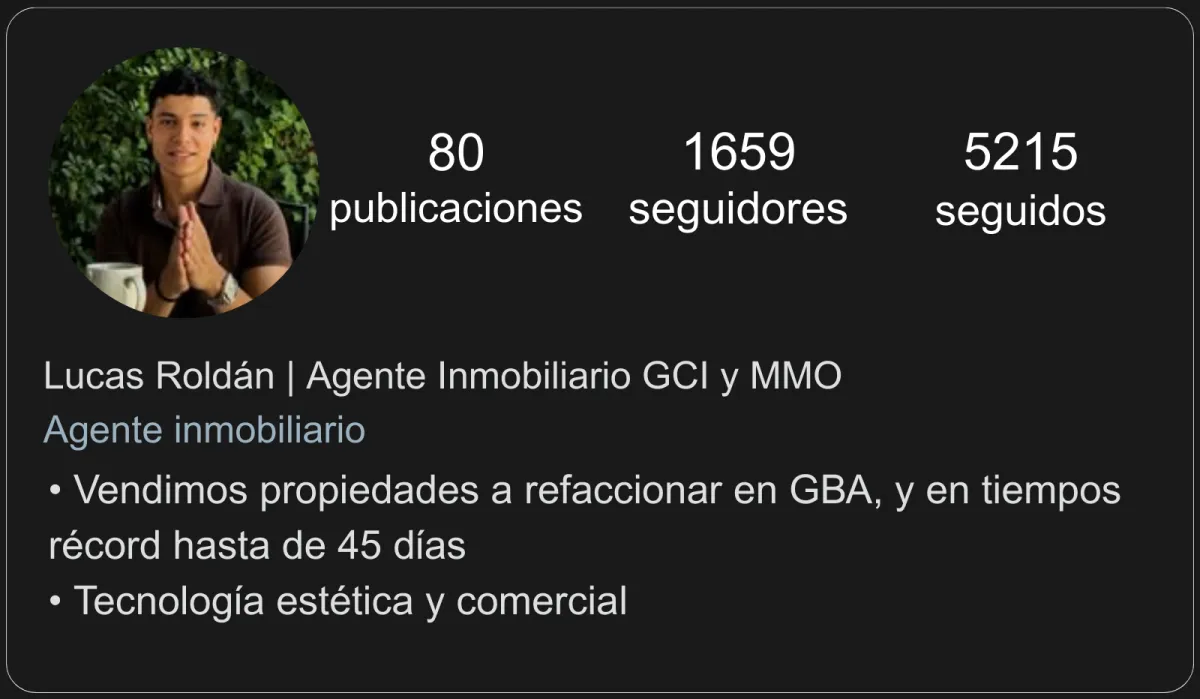 Lucas pasó de prospectar horas y horas a dueños vende, jamás se había grabado y tenía miedo. Lo logramos ayudar a captar 4 propiedades en un solo mes en videos super específicos y en el nicho de propiedades a refaccionar.